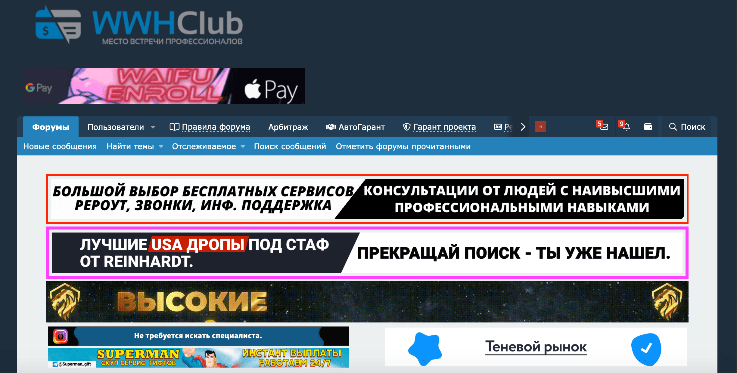 WWH — один из крупнейших русскоязычных форумов, посвященных кардингу. Площадка доступна как в даркнете, так и в обычном интернете, включая доступ с российских провайдеров. Особенностью форума является предоставление образовательных материалов.